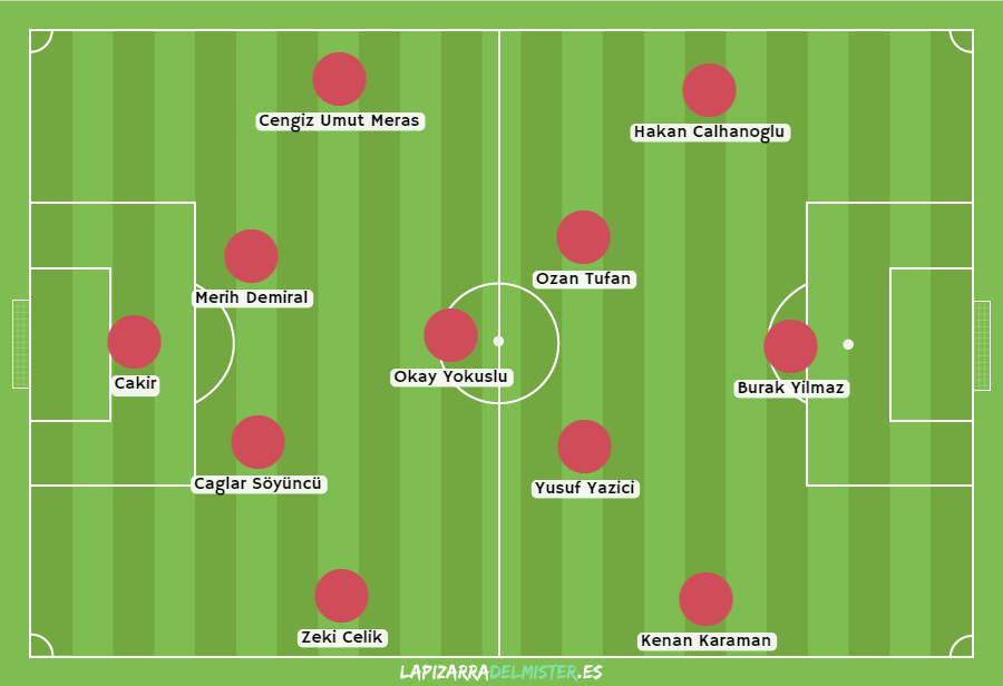Turquía cuenta en su plantilla con muchas piezas interesantes a tener en cuenta para la Eurocopa: Zeki Celik, Caglar Söyúncü, Ozan Kabak, Merih Demiral, Okay Yokuslu, Hakan Calhanoglu, Yusuf Yazici, Cengiz Ünder, Enes Ünal y Burak Yilmaz. Un equipo a tener en cuenta, con muchos jugadores que llegan a un gran nivel, con Yilmaz como capitán y estrella ofensiva llegando como una de las estrellas del Lille campeón de la Ligue 1.