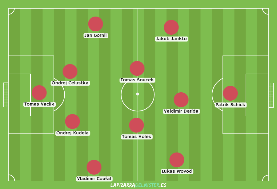 Sus estrellas son: Tomás Vaclik, Vladimir Coufal, Tomas Soucek, Vladimir Darida, Jakub Jankto y Patrik Schick. El volante del West Ham es su pieza principal. Lo hace todo en el equipo y lo hace bien. Un futbolista de un nivel superior.