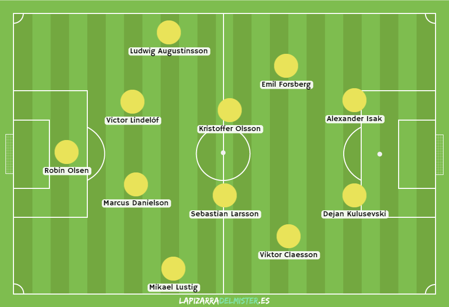 Sus principales estrellas son: Robin Olsen, Victor LindelÖf, Emil Krafth, Emil Forsberfg, Dejan Kulusevski, Alexander Isak y Marcus Berg. El atacante de la Juventus de Turín es la pieza más determinante. Su velocidad y desequilibrio, aprovechando el juego de transiciones de Suecia, puede hacer mucho daño a las defensas rivales como, por ejemplo, la de España.