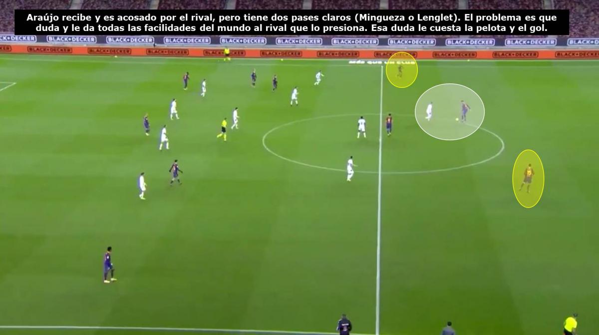 Pese a que la derrota no fue su culpa y que venía mostrando un rendimiento alto en los partidos anteriores (hasta el punto de ser el mejor del Barcelona en dicha posición en las últimas semanas, Ronald Araújo cometió un cumulo de errores en el gol del rival, en una jugada de fácil ejecución y dónde no estaba pasando nada.