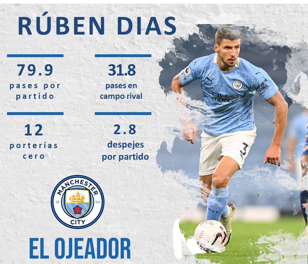 Rúben Dias es uno de los mejores centrales en la actualidad y, junto a nombres como Ilkay Gundogan y Joao Cancelo, es una de las razones del buen momento que está viviendo el Manchester City.